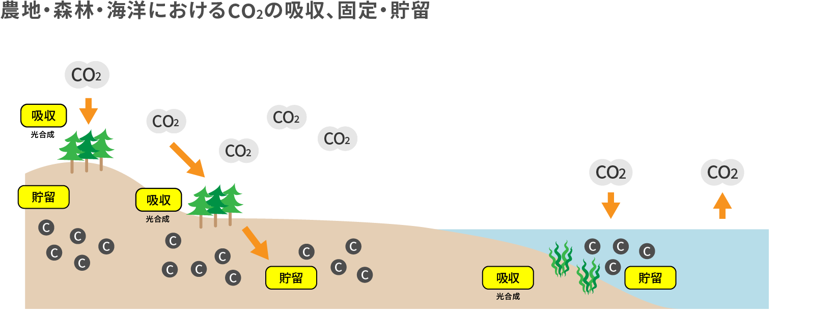農地・森林・海洋におけるCO2の吸収・固定、炭素の貯留とは