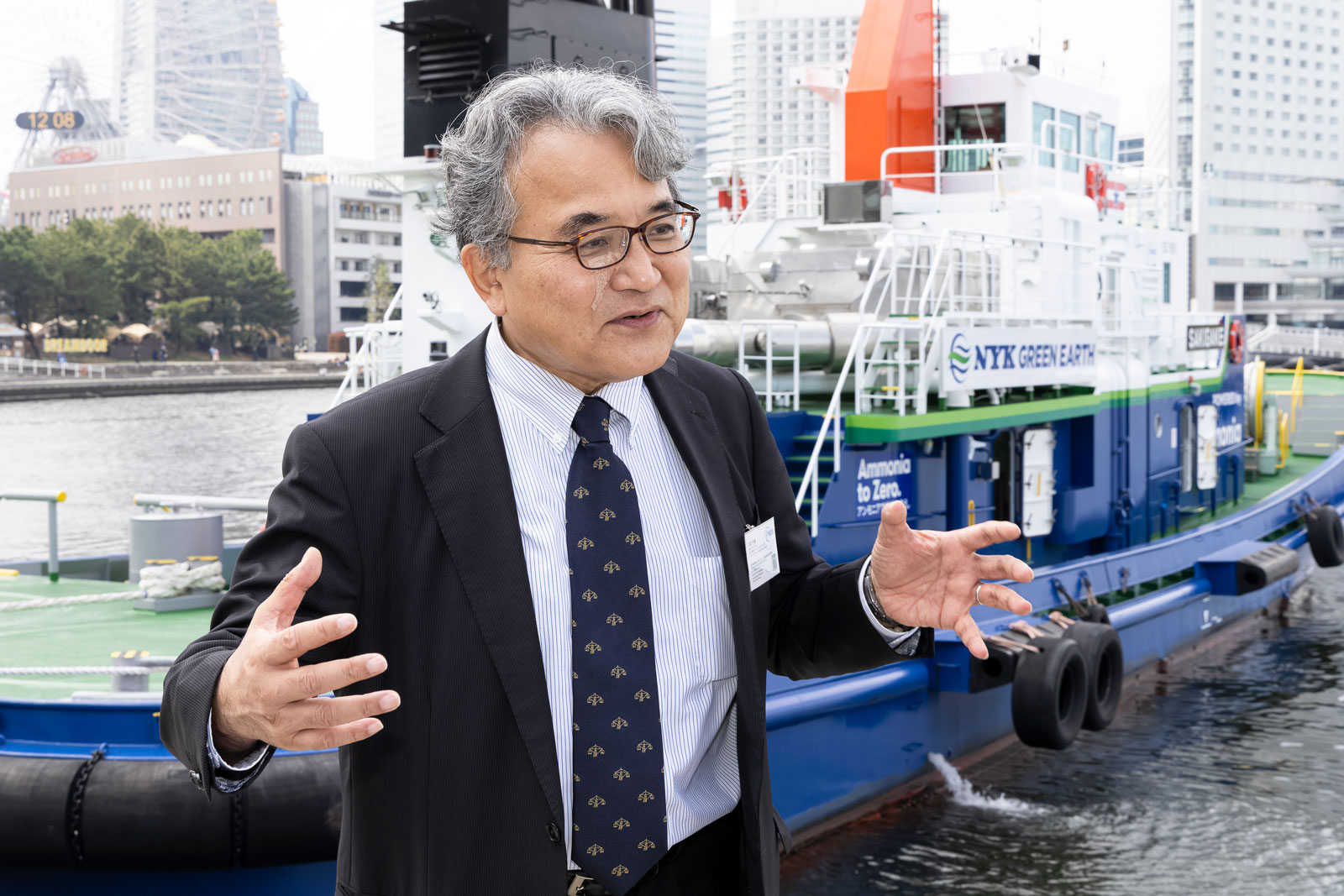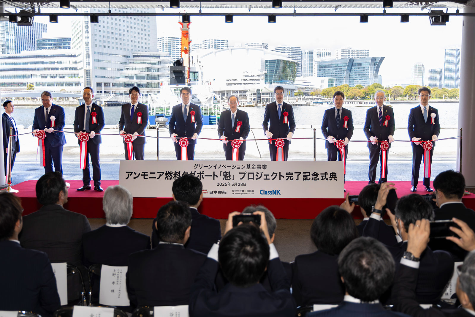 「Ammonia to Zero. アンモニアで地球を救え。」この標語を掲げ、アンモニアを燃料とするタグボート「魁(さきがけ)」の実証航海が完了したことを報告する節目の記念式典が、2025年3月28日に横浜港で開催されました。