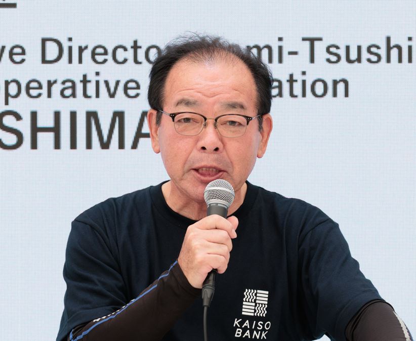 上対馬町漁業協同組合代表理事組合長の八島康平氏上対馬町漁業協同組合代表理事組合長の八島康平氏は「以前から藻場再生に取り組んできましたがマンパワーが不足しています。漁協組合員は約380人で平均年齢が67.5歳で、若い人たちが参加してくれることを期待しています」と思いを語ります。