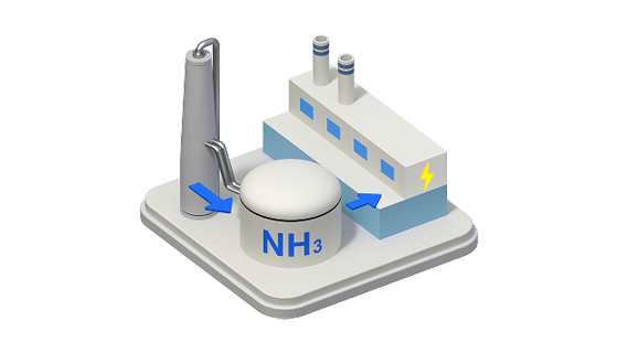 NH3という分子式に見られる通り、アンモニアには炭素(C)が含まれていません。いくら燃やしてもCO2が出ないのは、次世代エネルギーとしてとても魅力的です。また、アンモニア単体で燃料にするだけではなく、石炭などに混ぜて使うこともできます。使う化石燃料の量が減れば、その分CO2の排出削減が進みます。