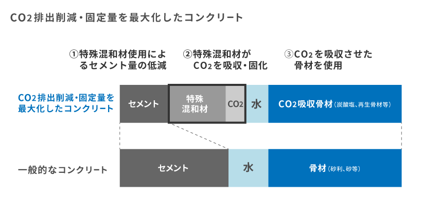 - *4 経済産業省2022年9月29日付ニュースリリース「グリーンイノベーション基金で開発したCO2を固定化し収支をマイナスにするコンクリート等の現場試行工事を実施します」