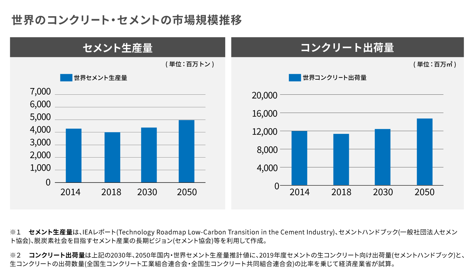 - *1 経済産業省第11回産業構造審議会グリーンイノベーションプロジェクト部会エネルギー構造転換分野ワーキンググループ資料4「コンクリート・セメントのカーボンニュートラルに向けた国内外の動向等について」p5