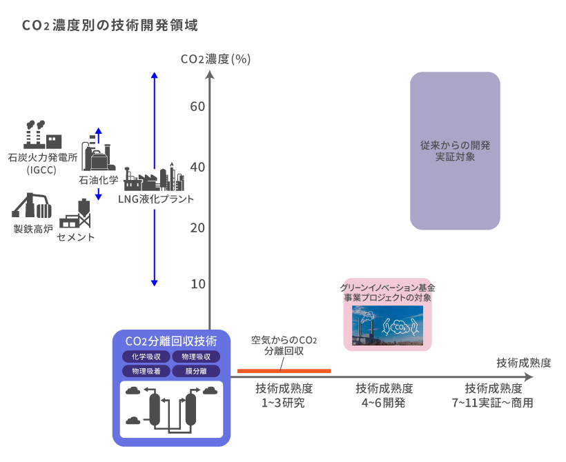 出典:国立研究開発法人新エネルギー・産業技術総合開発機構内で作成CO2分離回収技術の強化を通じた産業競争力強化