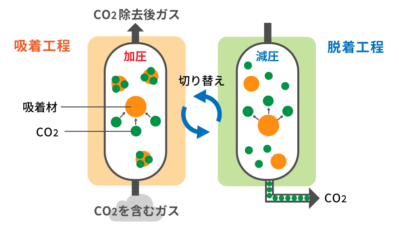引用元:国立研究開発法人 新エネルギー・産業技術総合開発機構「2020年度NEDO環境部成果報告会」「CO2分離・回収技術の概要」資料を参考に作成2.物理吸着法