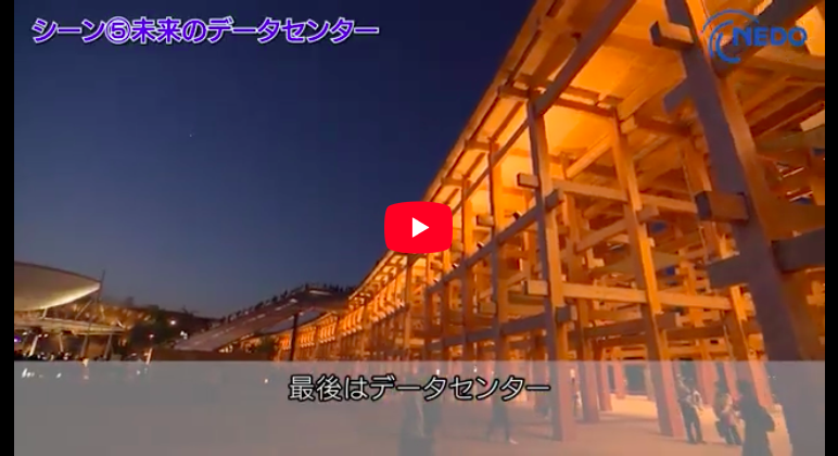SaaSや生成AIの活用を支えるデータセンター。生成AIの利用拡大が加わったことでデジタル化が一層加速し、データセンターは世界各地で拡充されていきます。ただ、一方で課題があります。データセンターが消費する電力消費量が爆発的に拡大する可能性があることです。今後、大規模データセンターの急増により、データセンター全体の電力消費量もうなぎ登りに増え続けることが予想され、これまでの技術進化では「電力消費量の増加に追いつかない」と危惧されています。前述の自然由来の発電やCO2排出を抑えた発電だけでなく、データセンターの消費電力を削減せねばなりません。GI基金事業では、消費源の省エネ化を加速するための技術開発を進めています。大阪・関西万博で期間限定※にて披露された技術を見てみましょう。 ※公開期間は2025年5月13日~26日