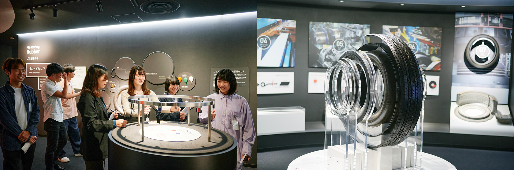 同社内にある「Bridgestone Innovation Gallery」を巡り、多種多様なタイヤ・ゴム製品や、中々見ることができないタイヤの構造について学びました
