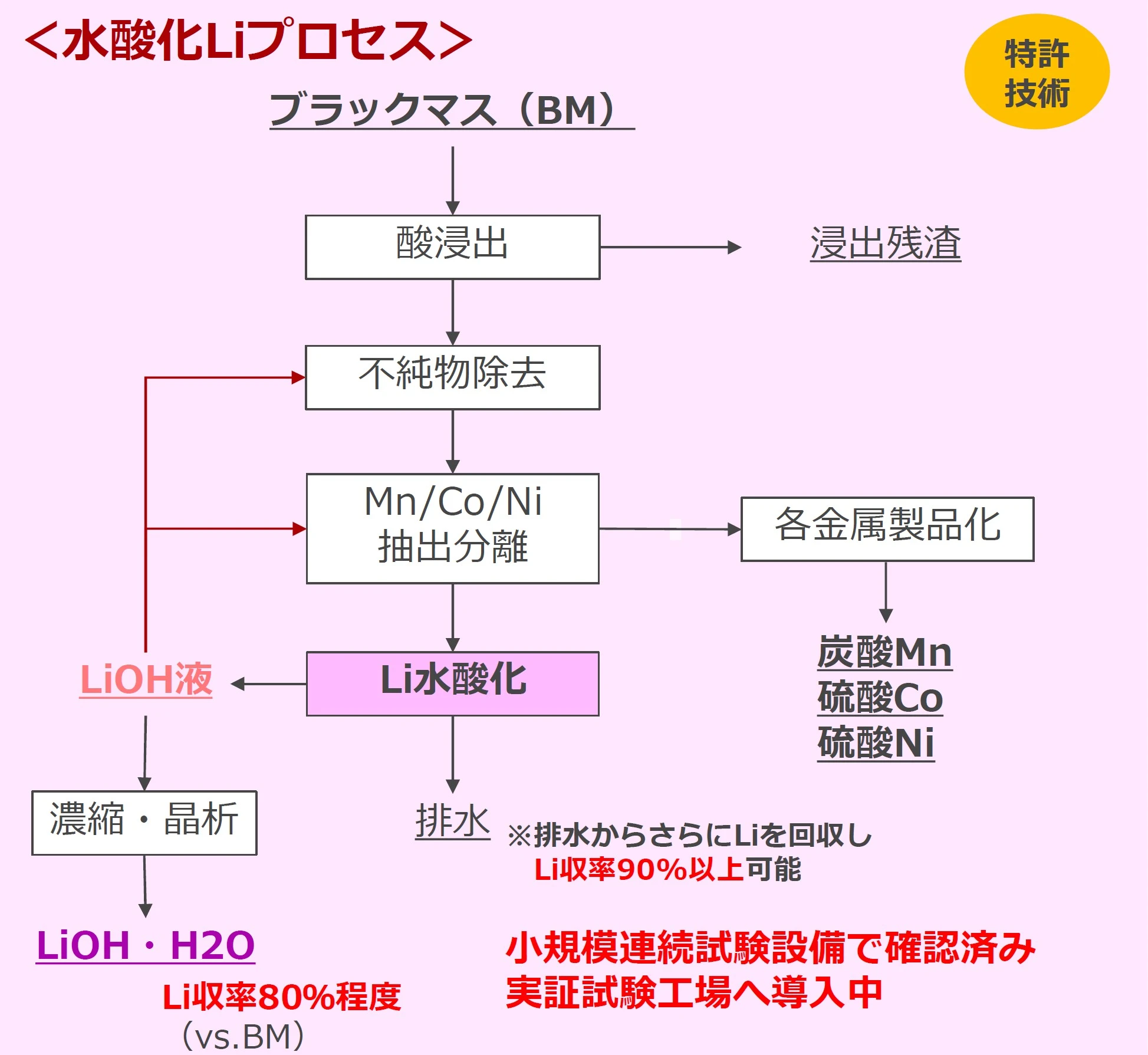 JX金属サーキュラーソリューションズが開発中の水酸化リチウムを利用した金属回収技術の原理(出典:JX金属サーキュラーソリューションズ)