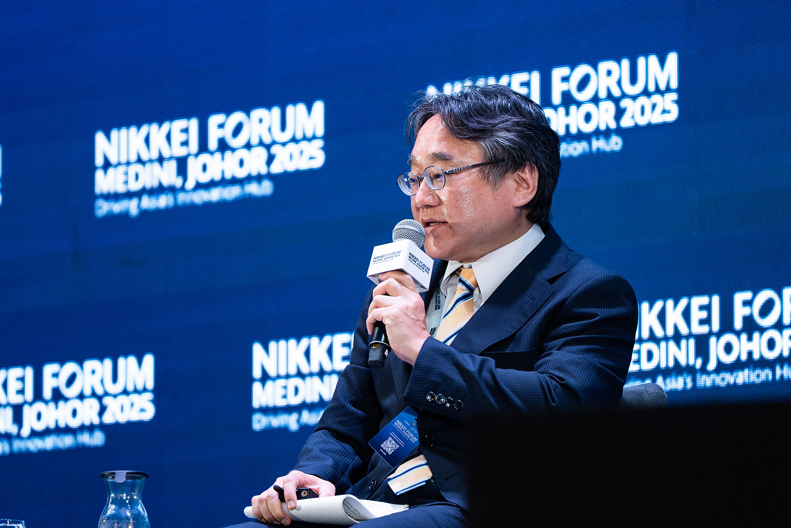 講演するちとせ研究所CEOの藤田朋宏氏※1 国際会議は「NIKKEI Forum」で政府関係者、事業家、投資家の合計300が参加した。ジョホール州のイスカンダル開発地域で2日間開催され、2日目にはマレーシア首相のアンワル・イブラヒム氏が登壇。イブラヒム首相はサラワク州のグリーン水素イニシアチブについて言及するなど、環境に対しても関心が高まっている。サラワク州は主な産業が石油・天然ガスのため、次世代産業の育成に向けたグリーントランスフォーメーションへの関心が高い。