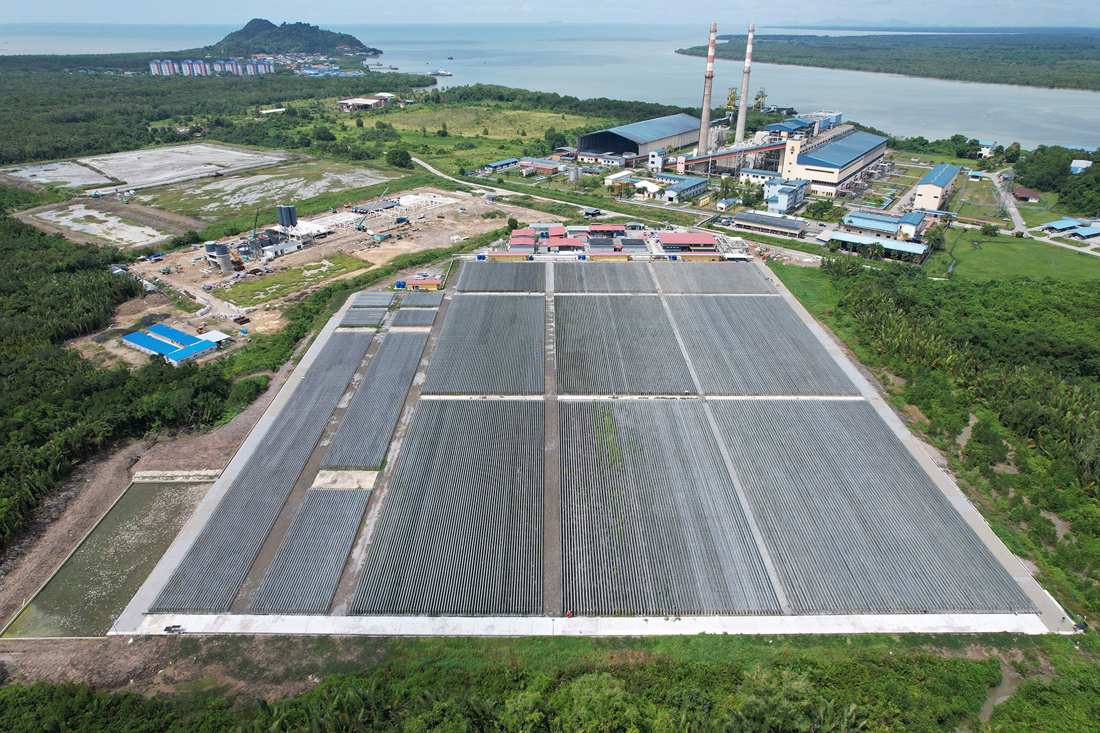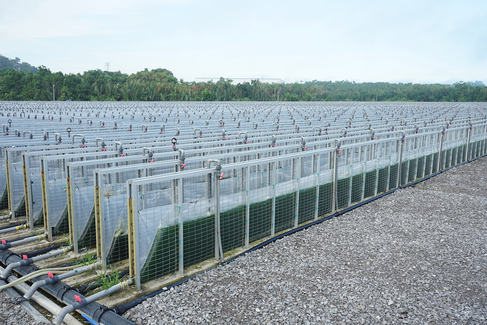 まずクチンにある面積5haの設備「C4」は、サラワク州政府系電力会社の石炭火力発電所に隣接する地域にあり、石炭火力発電所で排出されるCO2を使って微細藻類を育成しています。この場所は海抜0~5mで農地への転用が厳しい土地です。塩地で地盤が柔らかく、土がなくピート※2と粘土で形成されている地域です。