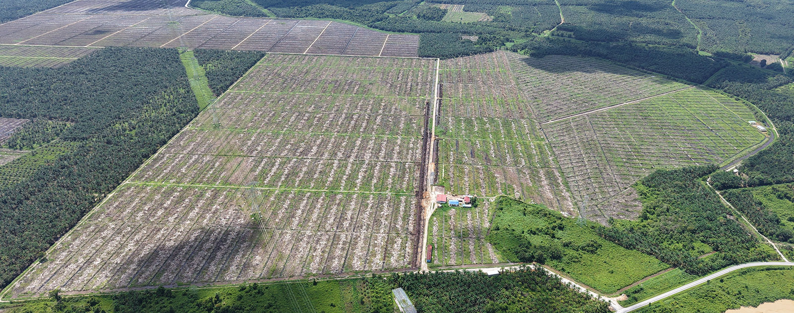 そしてサラワク州ゲドンにある敷地で始まったのが培養面積100haの実証設備構築に向けた準備です。使い道のなくなった古いパームヤシのプランテーション跡地を使います。長年のパームヤシの栽培によって土壌が酸性化し、プランテーションの継続が困難となった土地に、新たな産業を構築しようという構想です。すでに2025年3月にパーム林の伐採が完了し、治水・土壌改良が始まろうとしています。2027年9月の完成を目標にしています。