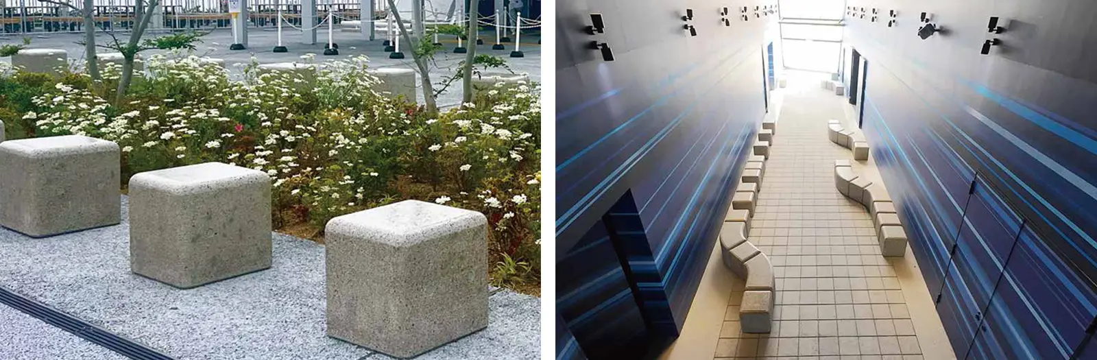 CPコンクリートの施工実績。大阪・関西万博「未来の都市」パビリオン内でベンチと一部舗装に使用