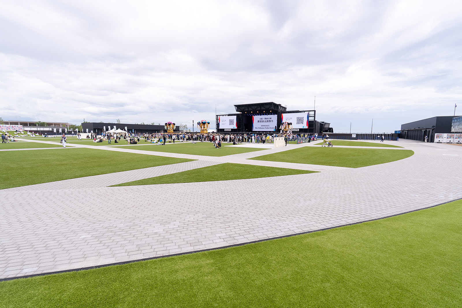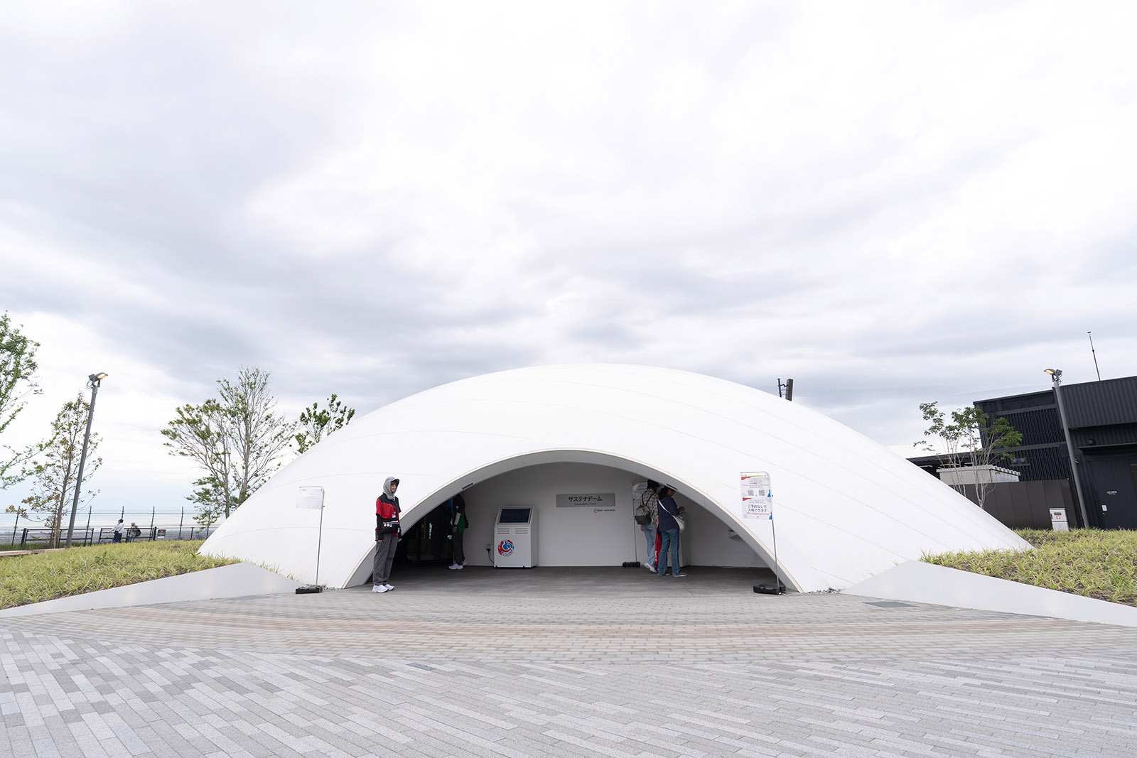 Sustainability DomeAt the entrance to the Sustainability Dome, ten types of low-carbon concrete blocks have been installed, including the CUCO-SUICOM Block, which utilizes CO2 directly captured from the atmosphere. These blocks have also been applied to the walkways of the Expo Arena Matsuri. Across the entire installation area of approximately 3,300 m², the use of such blocks reduced CO2 emissions by about 65 tons compared with conventional materials, while additionally fixing about 9.7 tons of CO2 in the concrete.