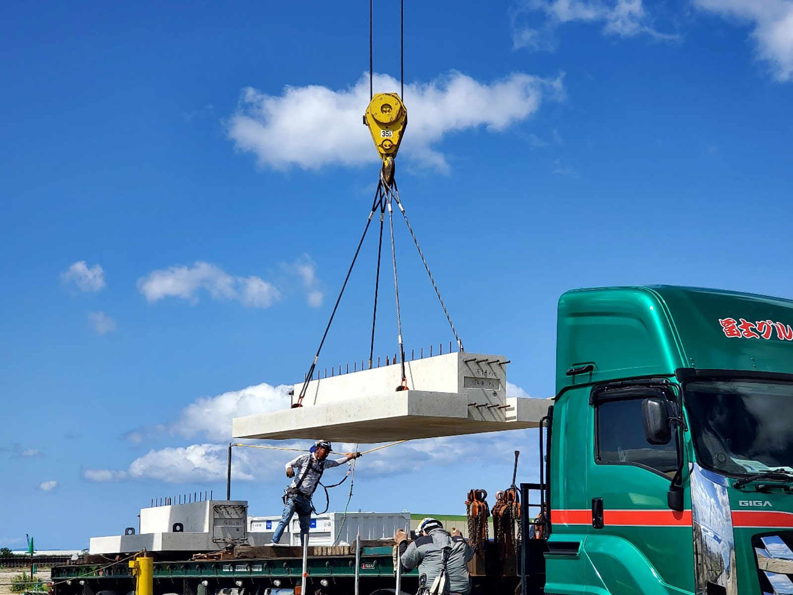 Precast concrete used in the foundation of Expo Messe WASSE (Photo courtesy of Takenaka Corporation)During ground improvement work for the construction of the Mitsubishi Pavilion, CCU materials were also applied, capturing and fixing about 160 kilograms of CO2. This approach achieved a reduction of roughly 5% in CO2 emissions compared with conventional ground improvement methods. The reinforced ground will undergo quality inspections even after the Expo concludes.