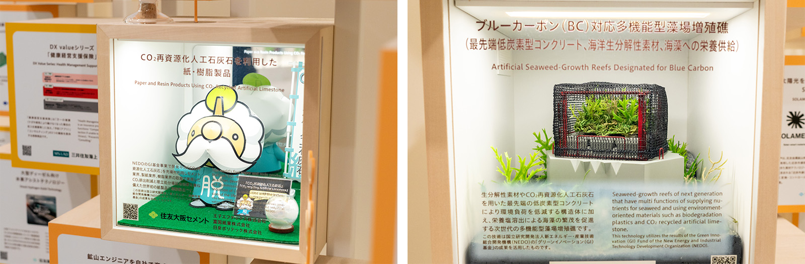 Exterior blocks of the Sumitomo PavilionThe applications of CO2 recycling artificial limestone extend beyond concrete. Development is also underway for paper and resin products that incorporate this material, as well as next-generation reef structures to help restore seaweed habitats. In June 2025, a pilot-scale facility with about ten times the production capacity of existing equipment began operation, paving the way for the practical use of artificial limestone.