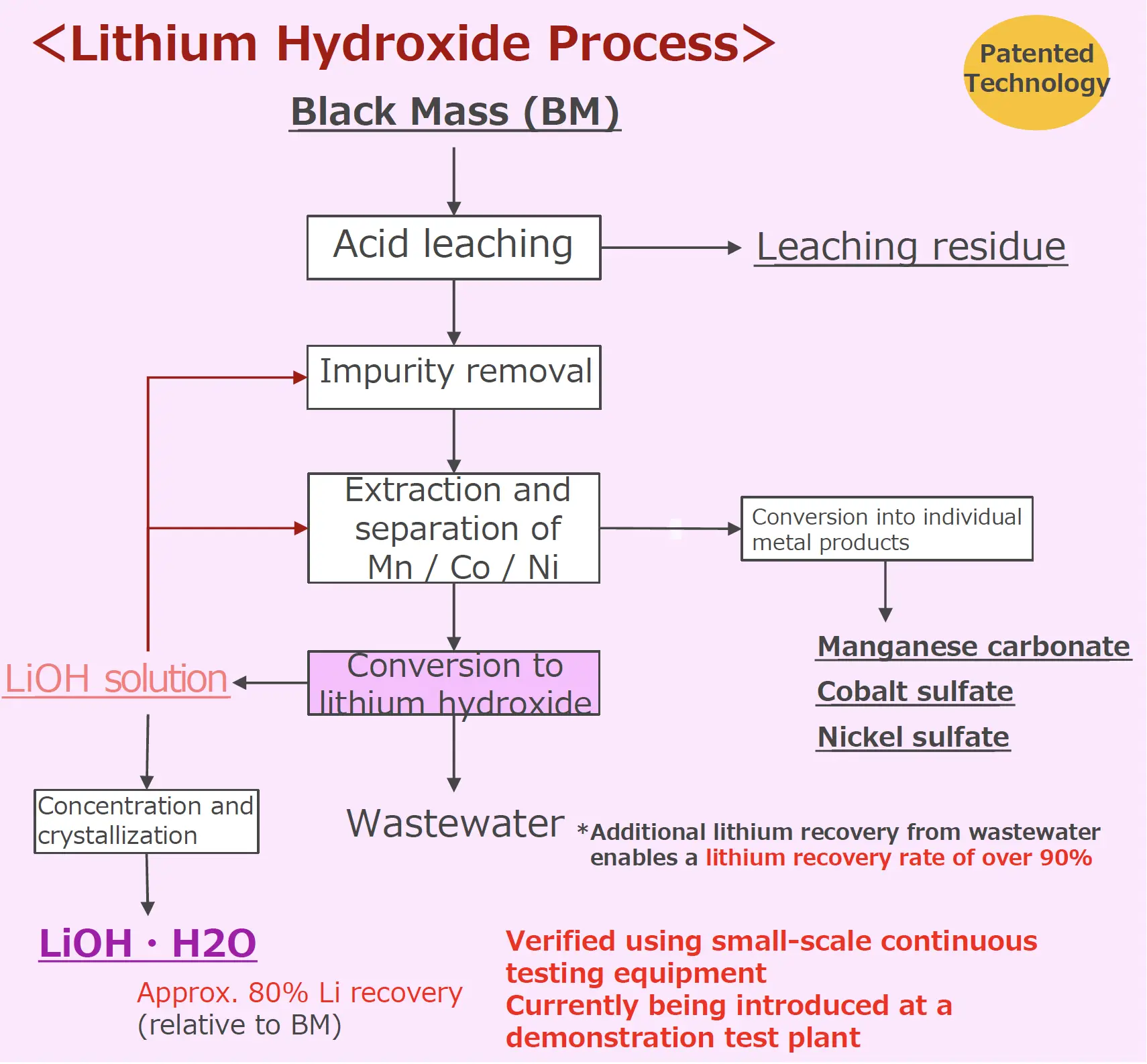 Principle of the metal recovery technology using lithium hydroxide under development by JX Metals Circular Solutions (Source: JX Metals Circular Solutions)