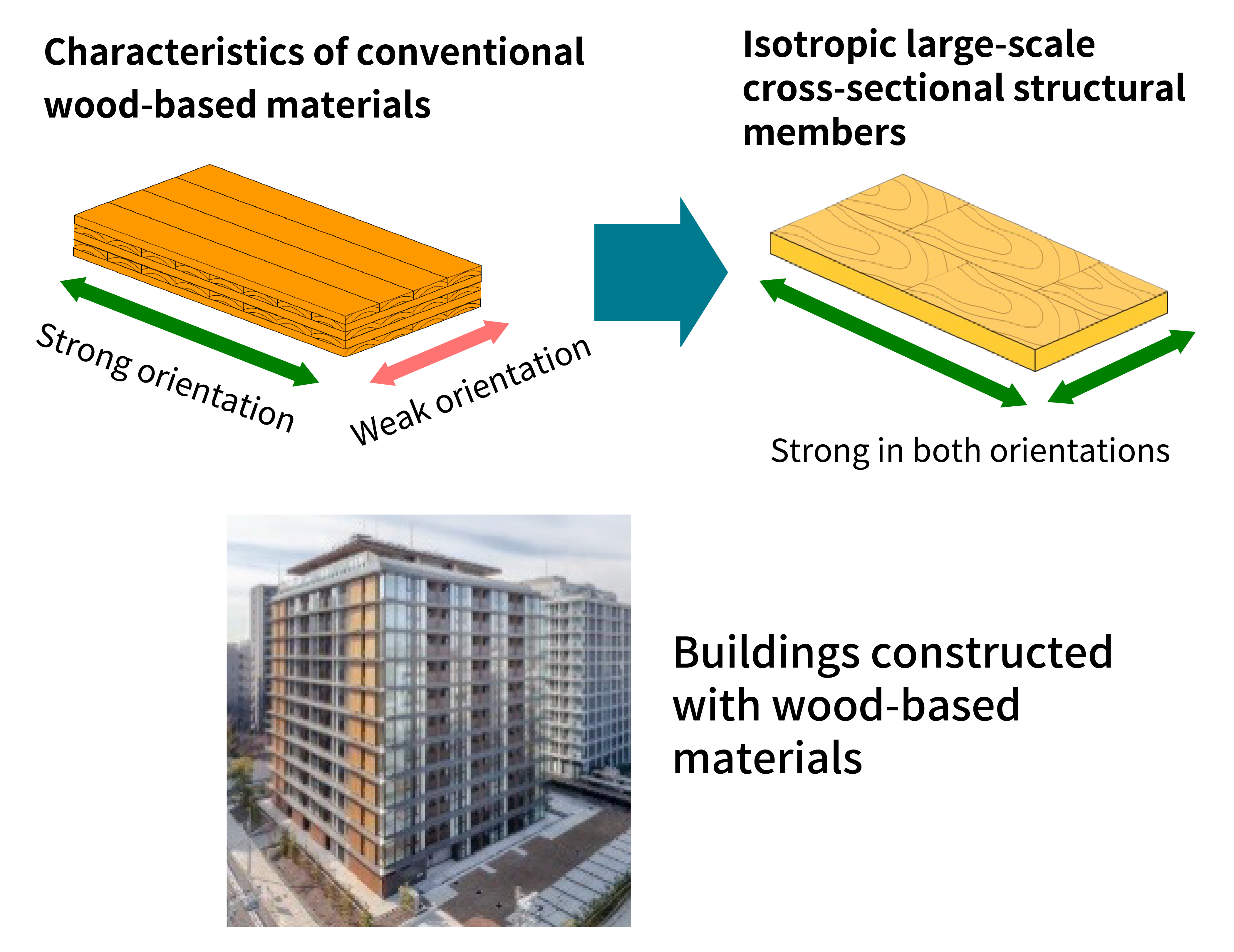 Development of wood-based isotropic large-scale cross-sectional structural members for the construction of high-rise buildings and other structures