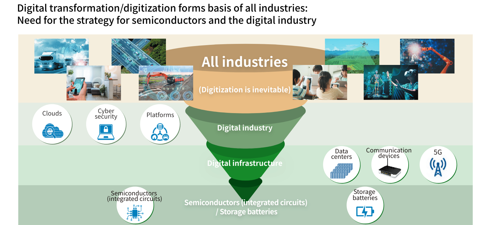 Increasingly electrified and digitalized society can realize Carbon Neutrality in all fields including manufacturing, services, transportation, and infrastructure. Therefore, the semiconductor/information and communication industries, as a foundation for digitization and electrification, are the key to advancing green and digital initiatives at the same time.