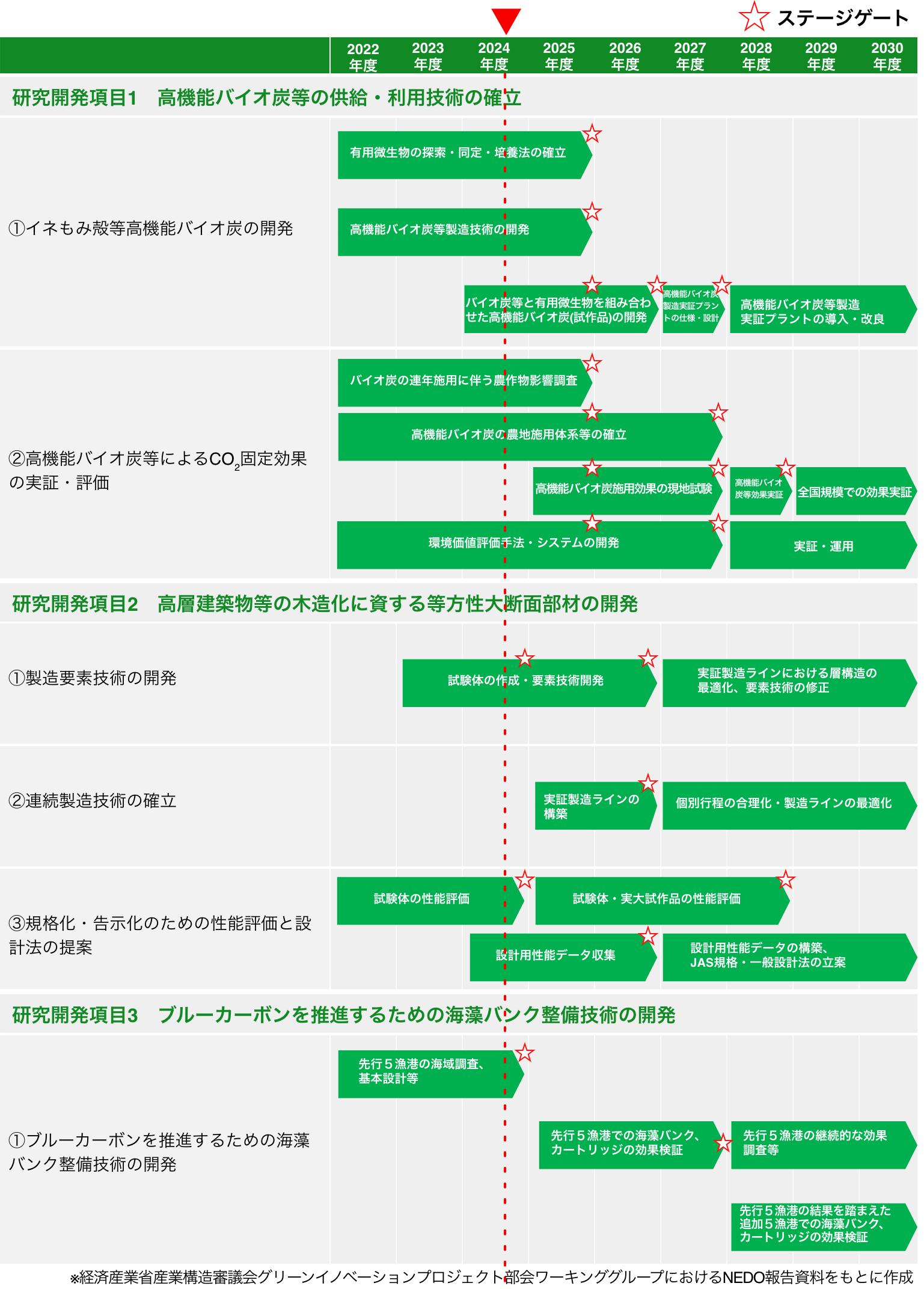- 「高機能バイオ炭等の供給・利用技術の確立」では、有用微生物を選抜し高機能バイオ炭のプロトタイプを開発中。あわせてバイオ炭の農地施用試験、環境評価システム等の開発を進行中。