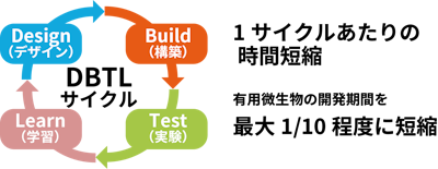- さらに、サイクル回数を削減しコストを低減する技術を確立し、有用微生物の開発期間を最大1/10程度に短縮する技術を確立
