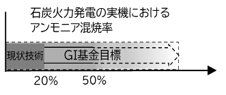 ① 石炭火力発電における50%以上のアンモニア混焼技術の確立