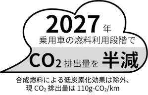 ・2050年:ガソリン需要が2021年以降年率2.4%、軽油需要が2021年以降年率0.4%で減少すると仮定して算出されるガソリン及び軽油の需要をすべて合成燃料で代替した場合のCO2削減量。
