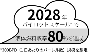 2030年:化石燃料によらないLPガス1,000トン/年以上の商用化(生成率30%から50%の合成技術の確立)