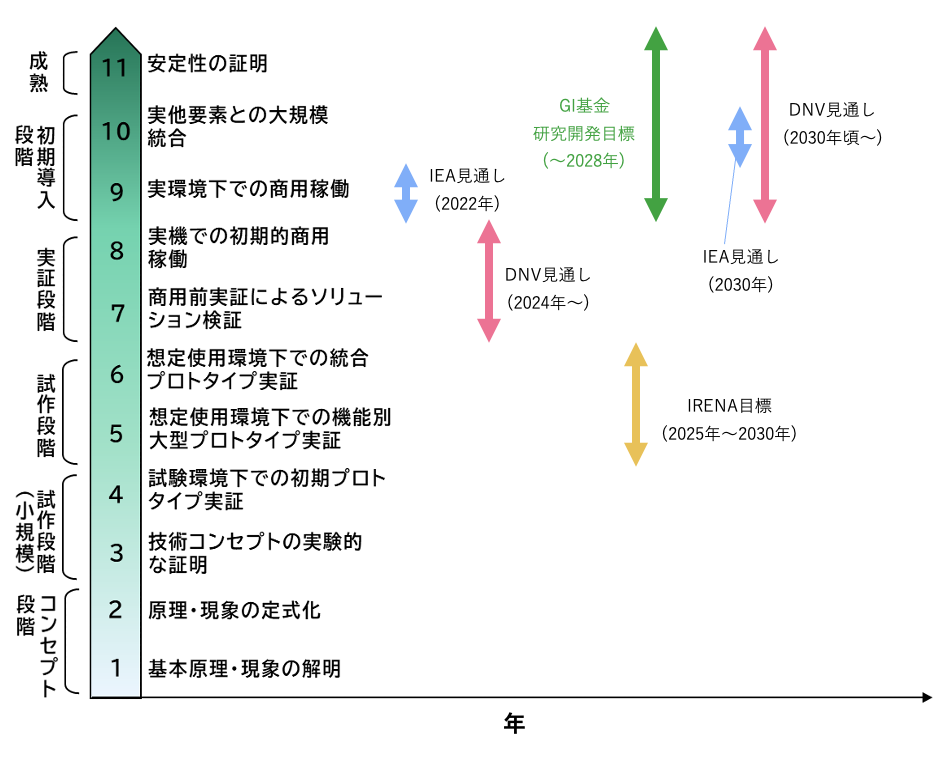 - DNV:実証試験と船上での商業利用の見通し(DNV, “ENERGY TRANSITION OUTLOOK 2021” (2021/9))