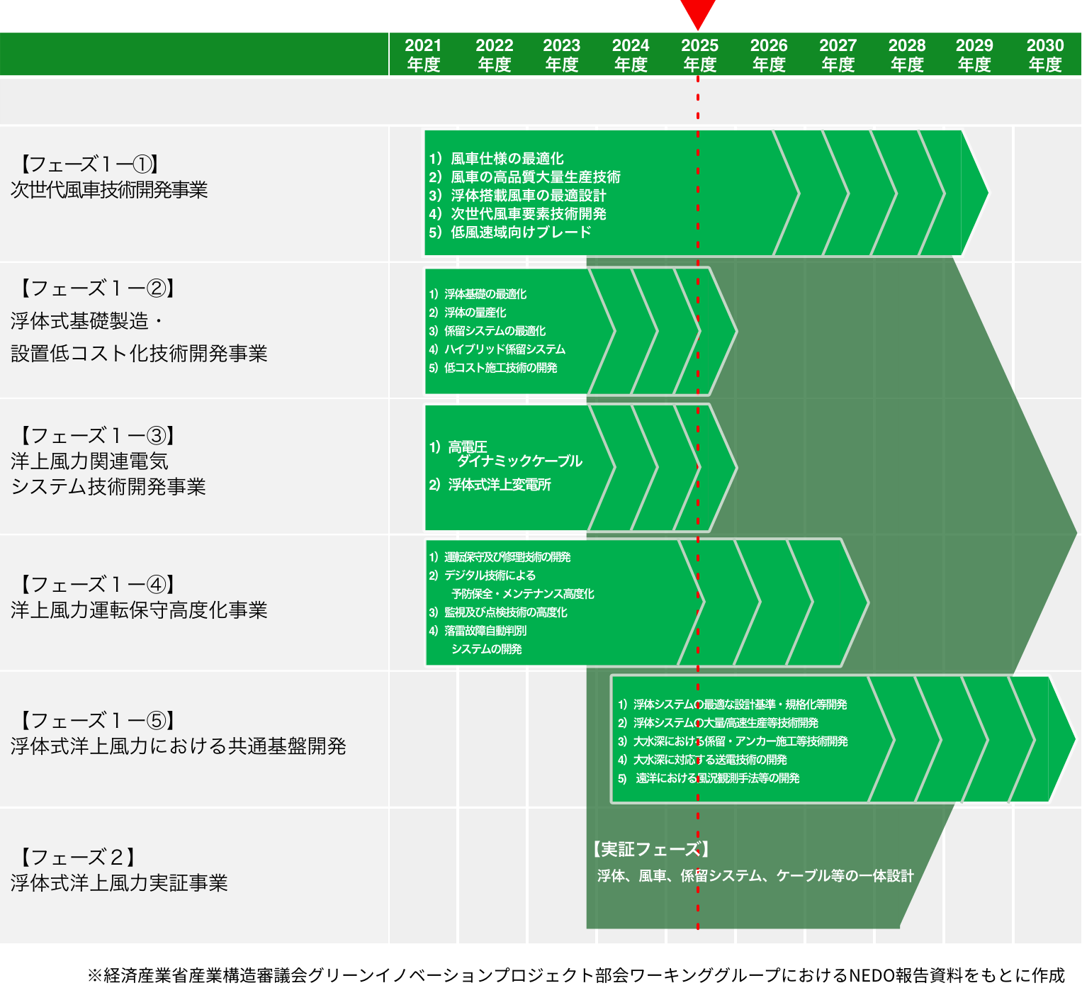 - 浮体式洋上風力発電システムの全体最適化に向けた検討のための条件設定を実施中。